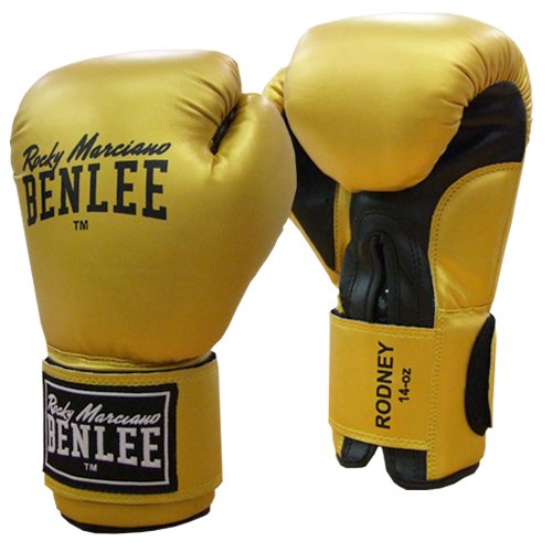 Benlee Rodney Gants de boxe Or/Noir 10. Fermeture velcro Doublure satin Plusieurs couches de rembourrage Trous d'aération sur la paume Attache de pouce Cuir artificiel.