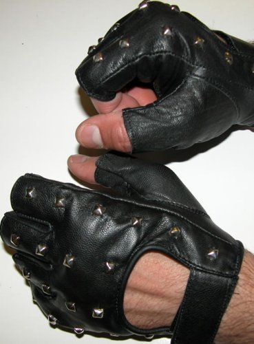 FINGERLESS LEATHER GLOVES WITH STUDS ONE SIZE