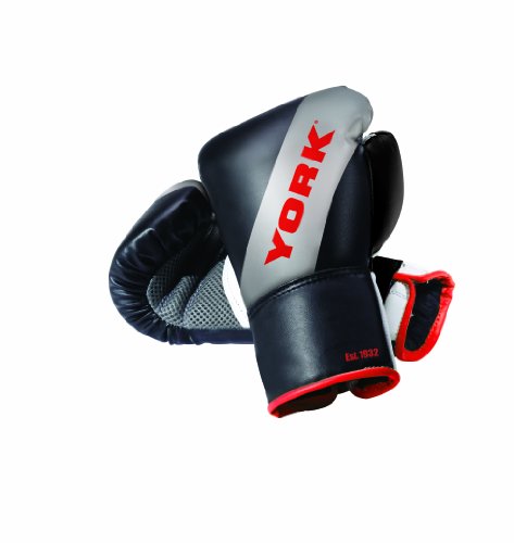 York Gants de boxe Noir/ argent /rouge 14 oz. Gants d'entraînement 14 oz Matériau solide Rembourrage doté de mousse amortisseur de chocs Attache-pouce pour plus de